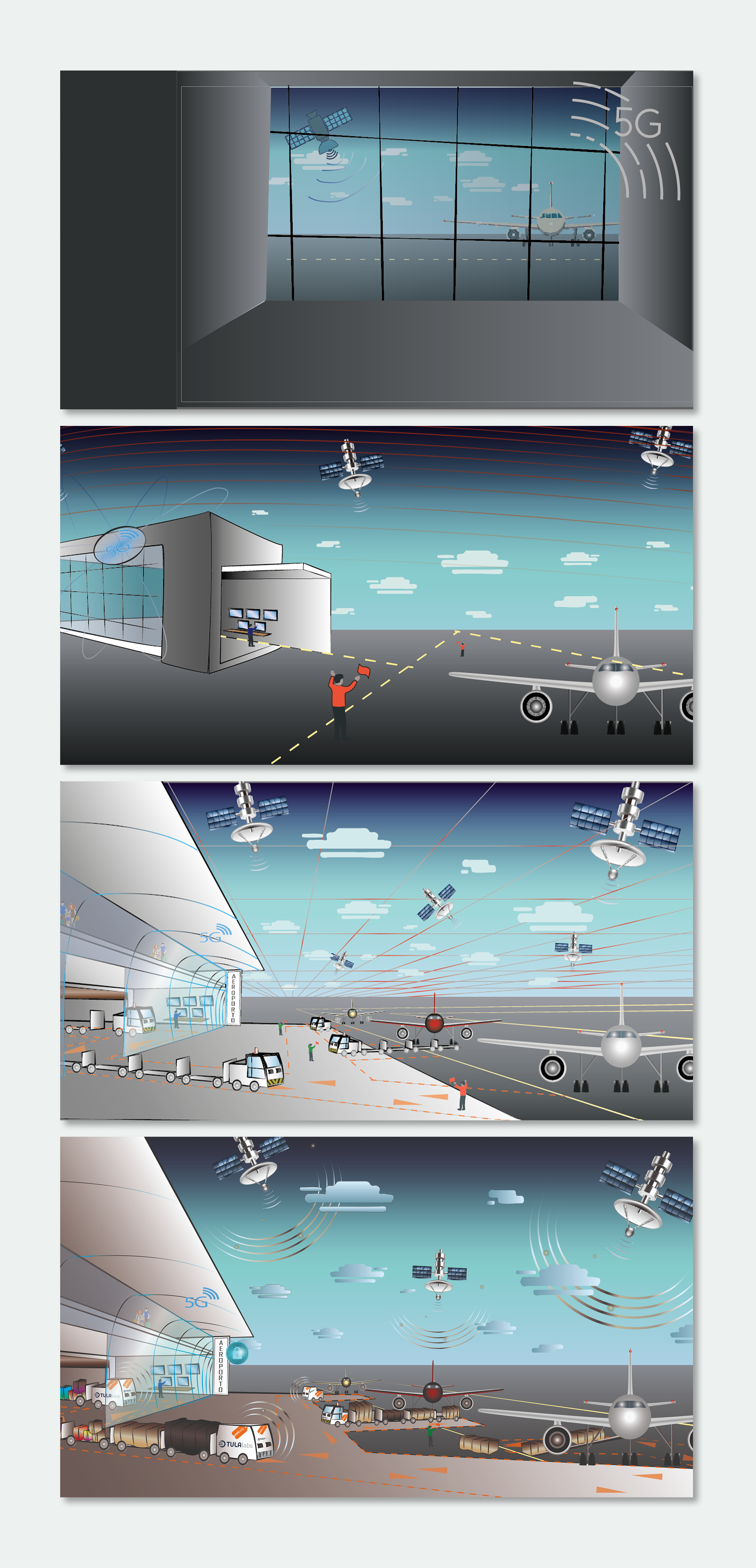 Illustration developed for a public competition to present the idea of electric luggage trolleys.